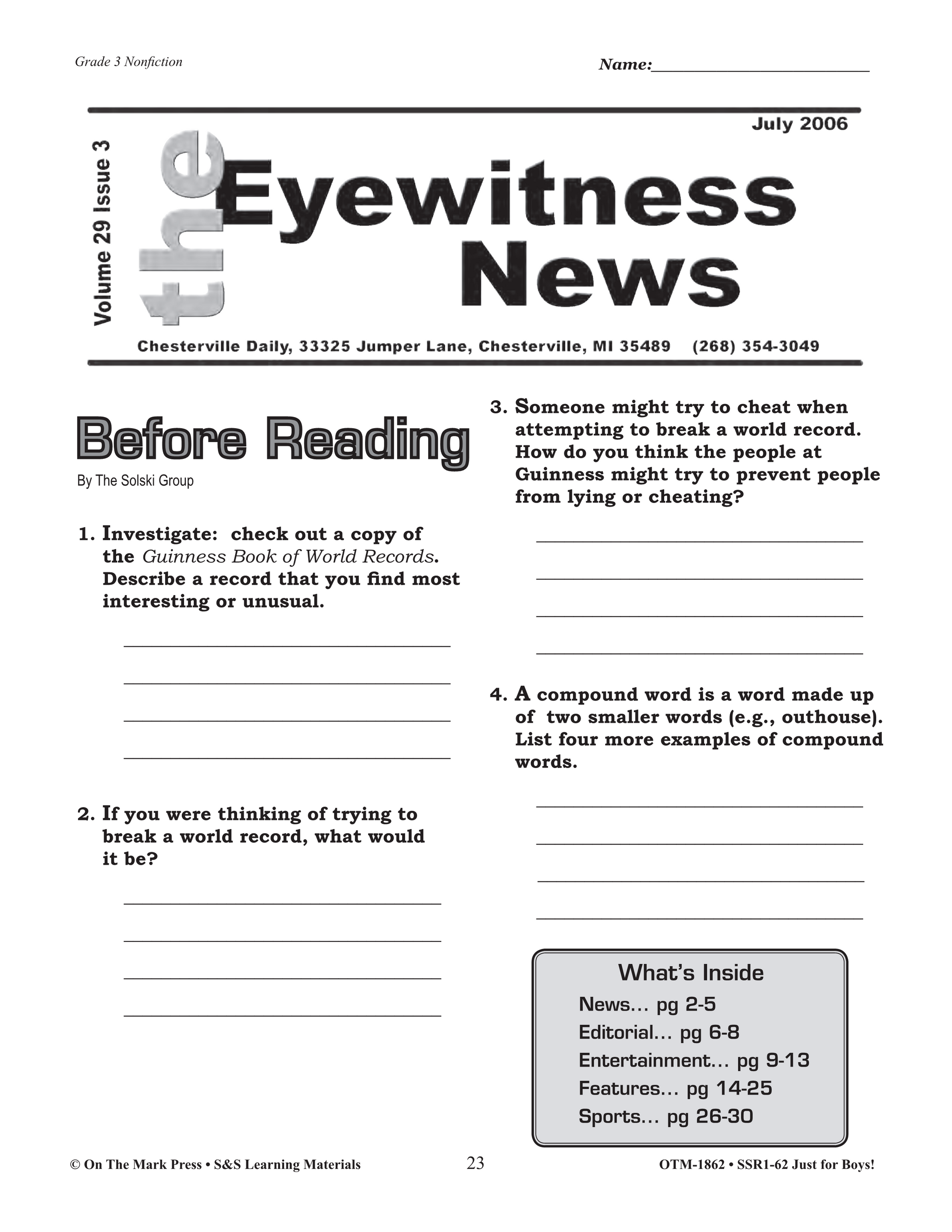 Source : www.guinnessworldrecords.comReading Comprehension Activities For Boys: Non Fiction Grade 3